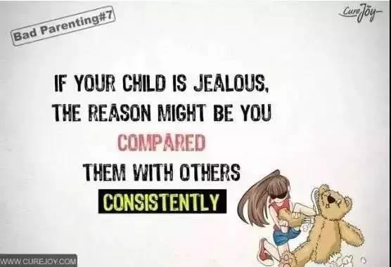 ▲如果你的孩子嫉妒心很重,原因可能是你总是把他和别的孩子进行比较。