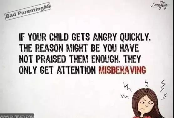 ▲如果你的孩子很容易生气,原因可能是你没给予他足够的表扬,他们只能通过不当的昂发引起你的注意。