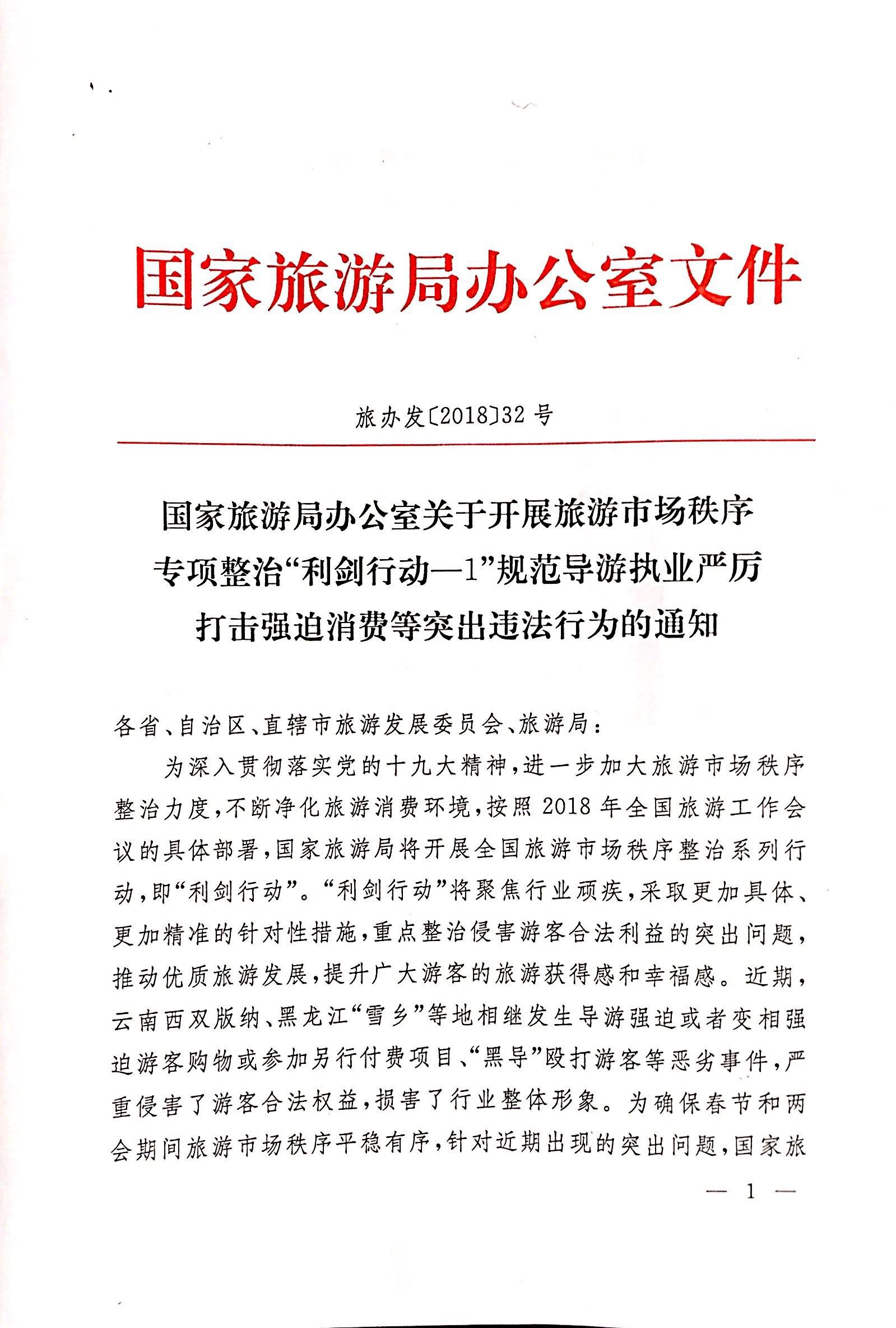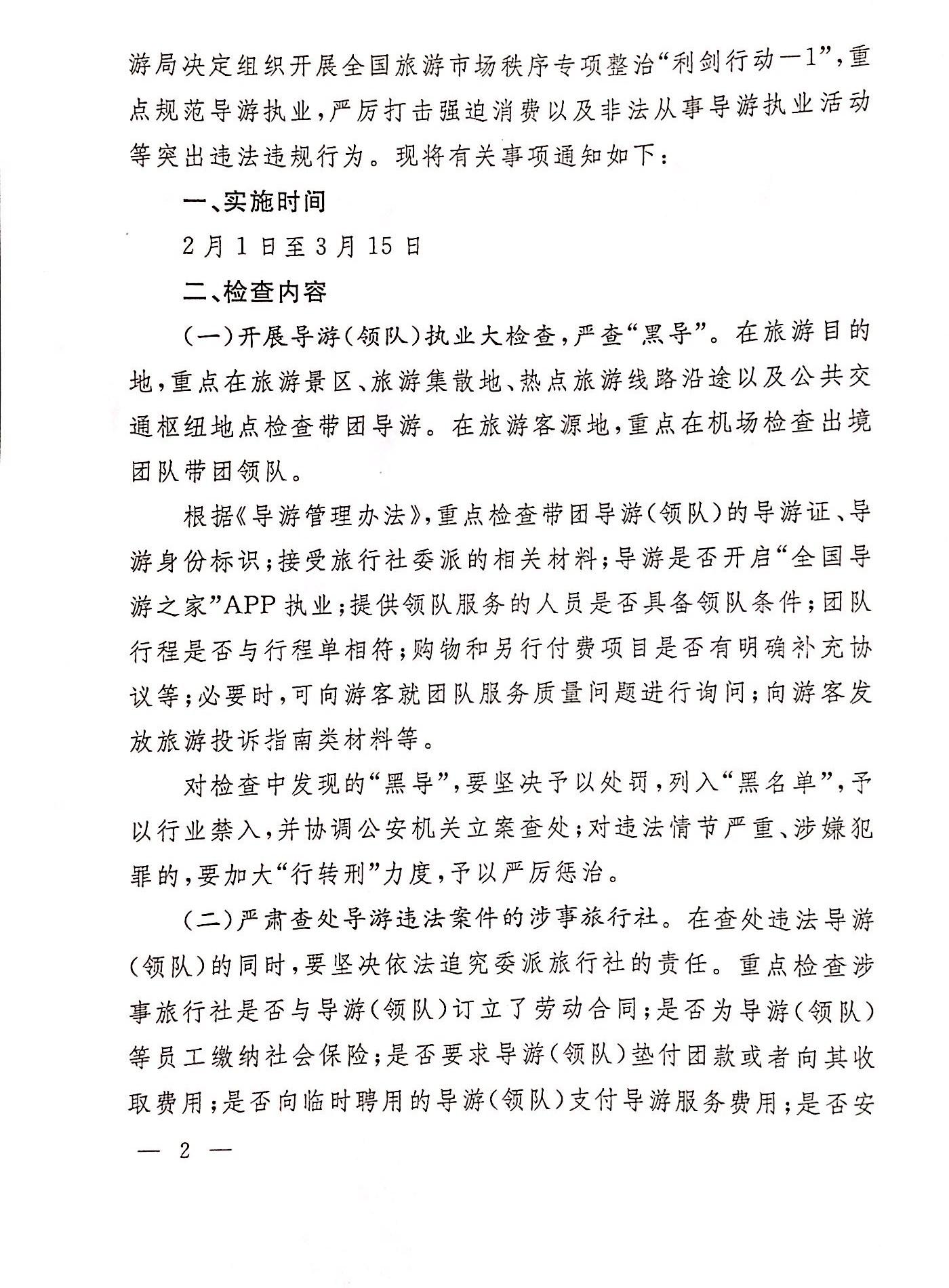 国家旅游局办公室关于开展旅游市场秩序专项整治“利剑行动—1”规范导游执业严厉打击